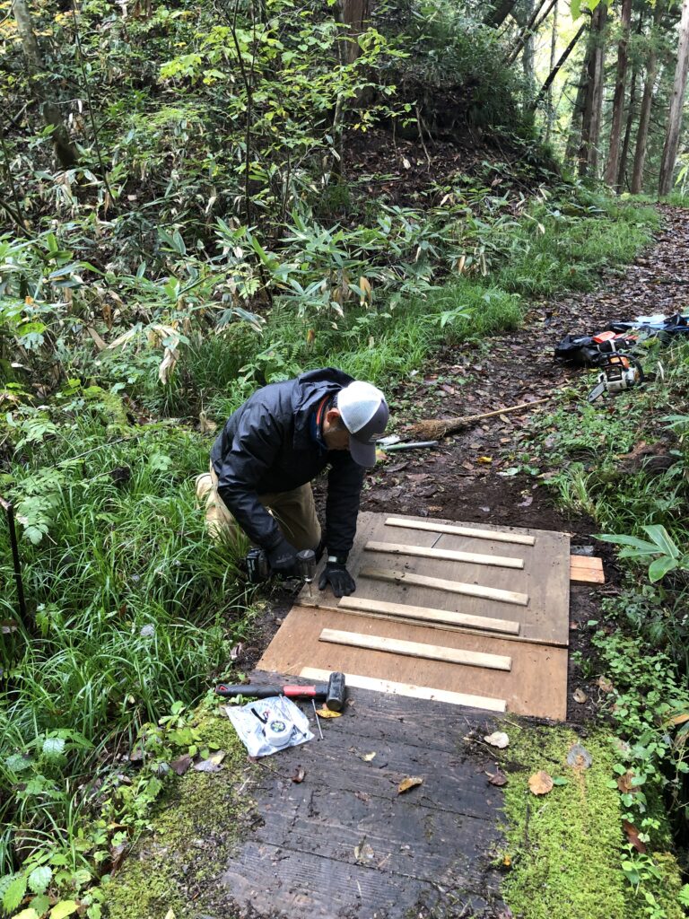 また、木橋に穴が開いていて踏み抜く危険性があるところには木橋の上に板を貼りました。