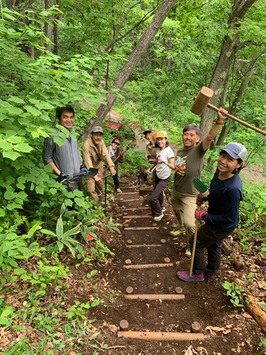 老朽化し、危険な登山道の状況を管理者である役場に対策も含めて報告したところ、整備の許可を頂きました。