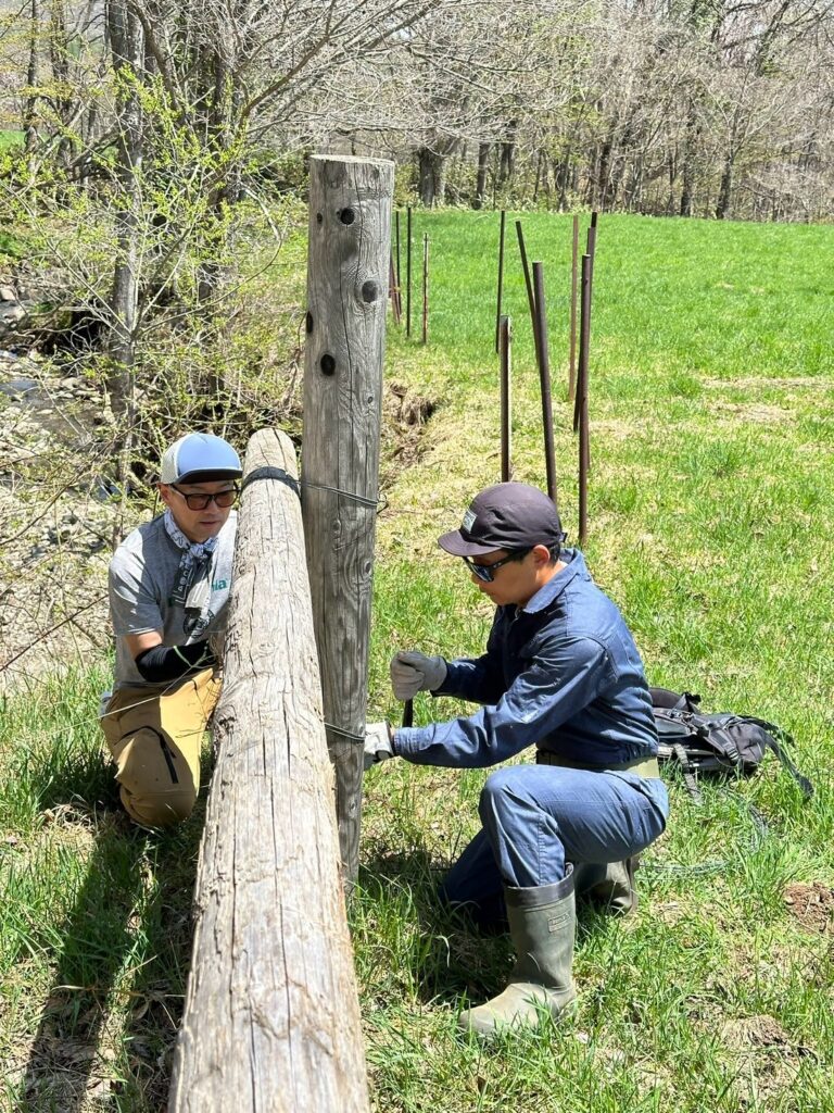 今年も地元ランナーの皆さんに有刺鉄線の取り付け作業をお手伝いいただきました。